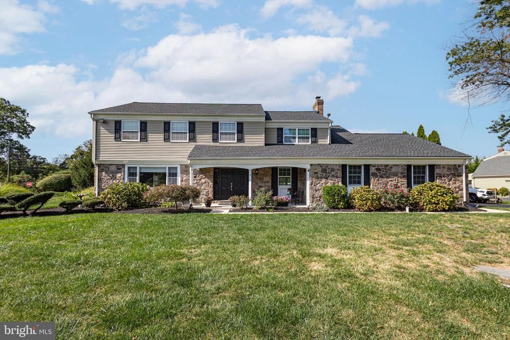 Great opportunity to acquire a desirable Shires Crossing community home with an incredibly spacious and private fenced-in backyard. Step inside this well maintained 4 bedroom, 2.5 bath center hall colonial to find to a stylish curved staircase and hardwood flooring mostly throughout. The first level features a bright formal dining room that connects seamlessly to a formal living room in the rear. Off of the foyer is a large gathering room with a wood burning fireplace that is graced by two built-in bookshelves. Connected to the family room is a sunroom with a charming beamed ceiling and walls of glass that extends to the backyard patio, perfect for entertaining or quiet relaxation. The eat-in kitchen offers abundant cabinetry, granite countertops, and stainless steel appliances, with large windows framing views of open space. The main level is also complete with an office, half bath and a laundry room which provides direct access to a two-car garage. Upstairs, the spacious primary suite boasts a changing area with an open closet of drawers and storage and its own private bath. A large hall bath is shared by three additional spacious bedrooms. The lower level provides partially finished space. Located in the award-winning Council Rock School District and convenient to shopping, dining, and commuter routes, this inviting Colonial blends comfort, abundant natural light and a thoughtful design throughout.