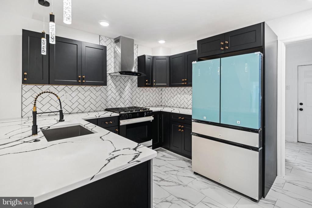 Welcome to 1345 S Wilton Street – a fully renovated 3BD/2BA home on a quiet block in the Kingsessing section of South West Philadelphia. This move-in-ready property features an open floor plan, luxury vinyl plank flooring, recessed lighting, and abundant natural light throughout and elegant chandelier with ceiling fan capabilities. The chef-inspired kitchen includes matte black cabinetry, quartz counters, herringbone backsplash, a statement refrigerator, and gold-accented fixtures followed by a laundry room complete with washer and dryer. Upstairs you’ll find three spacious bedrooms and a spa-style full bath with floor-to-ceiling marble-look tile, black hardware, and a modern vanity with bluetooth speakers. The fully finished basement offers a large bonus space and additional full bathroom—ideal for a media room, guest suite, or home office. Private rear entrance and updated systems throughout. Convenient to University City, SEPTA lines, Clark Park, and Cobbs Creek Park. Schedule your showing today!